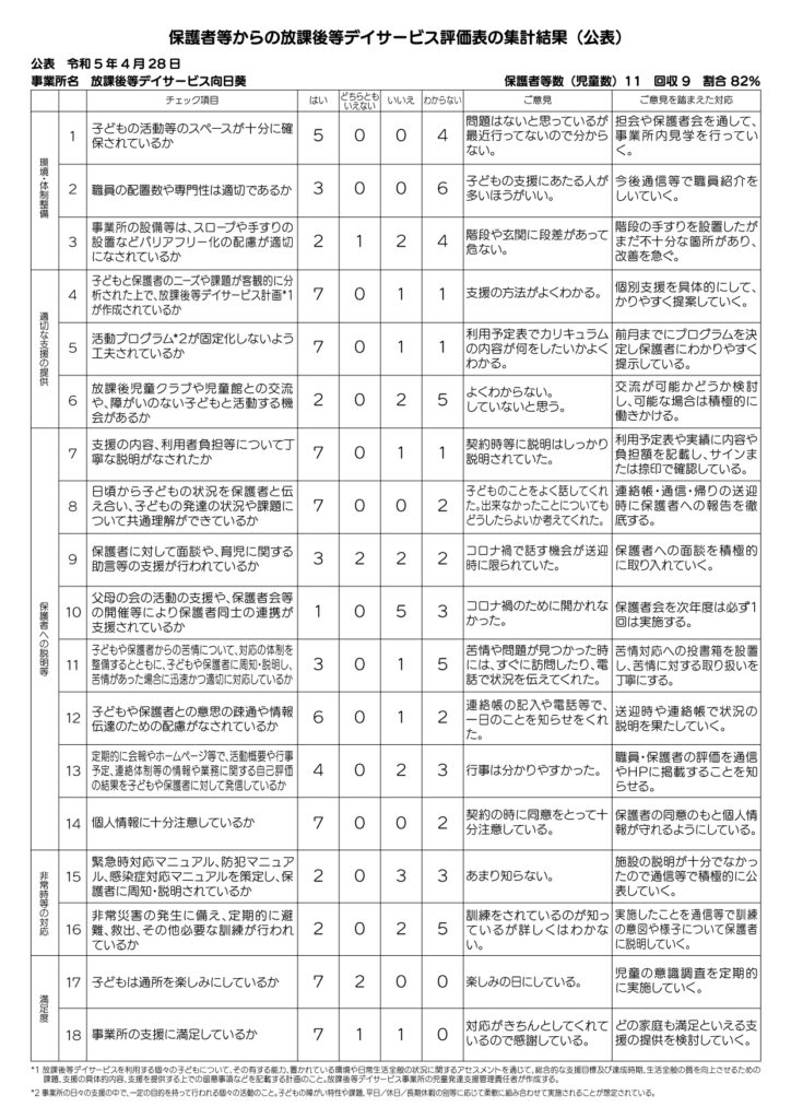 自己評価シート 保護者様アンケート