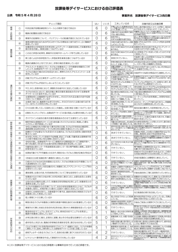 2022年度の自己評価シートを掲載します。
